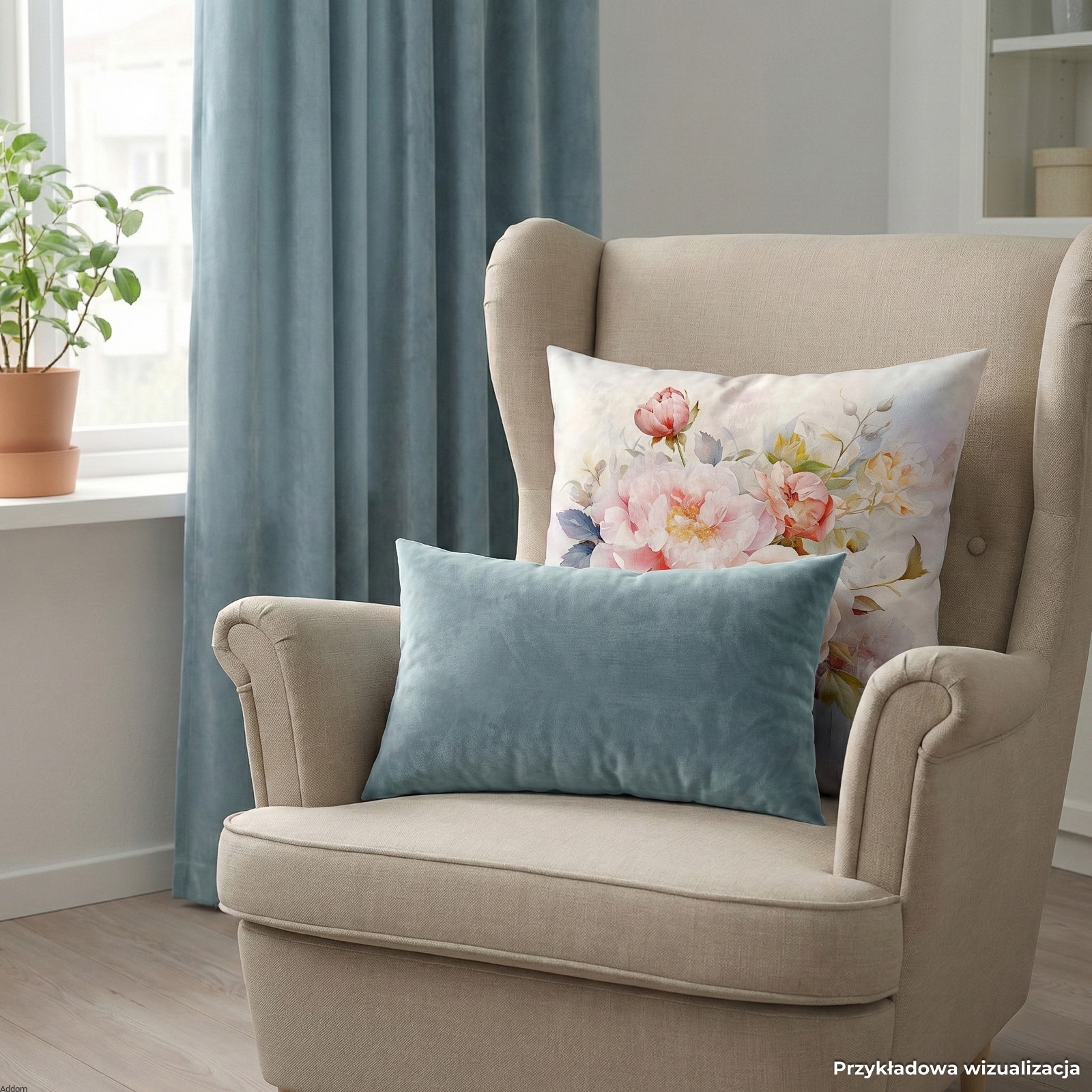 Poszewki eleganckie w bardzo piękne, stylowe róże, z solidnej, grubej, aksamitnej tkaniny. Obie strony są dekoracyjne, a rozmieszczenie kwiatów z obu stron może być różne, raz róża będzie na środku, raz będzie to piwonia, można je odwracać według tego, co się nam podoba i nie przeszkadzają temu zamki, które są wszyte z bok tkaniny. Wymiar 40x40 cm, a z tej tkaniny mamy jeszcze zasłony i materiał na metry, gdyby Państwo byli zainteresowani całą aranżacją, zachęcamy do kliknięcia zakładki produktów powiązanych.