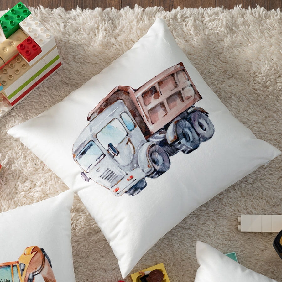 Poszewki typu velvet, czyli o delikatnym włosku, białe, z nadrukiem malowanych samochodów, używanych w budownictwie. Na każdej poszewce jest inny samochód użytkowy, koparko - ładowarka, wywrotka, lub betoniarka. Idealne uzupełnienie do firan i zasłon z tym samym motywem budowlanym - kliknij "produkty powiązane" aby szybko je odnaleźć. Każda poszewka ma rozmiar 40x40 cm.