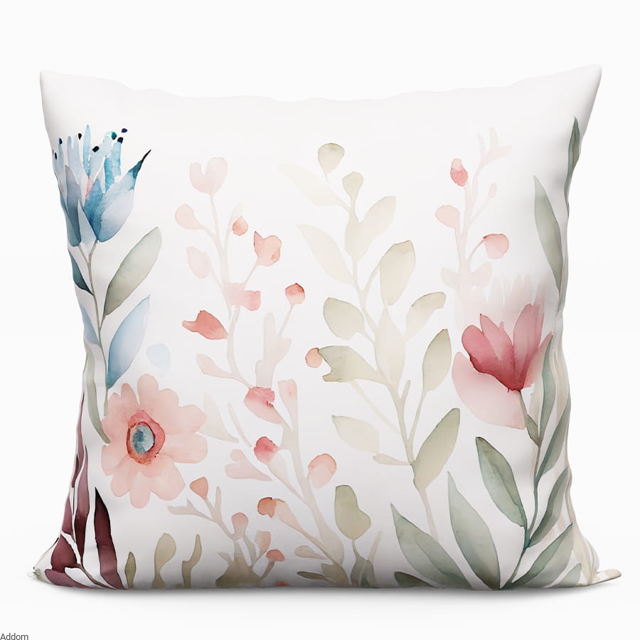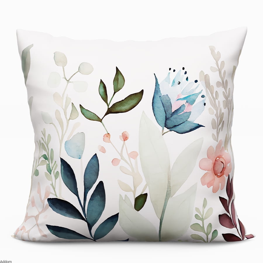 Poszewki dekoracyjne wraz z poduszką umieszczoną w środku, w kolorowe liście, jak malowane akwarelą, z lekkiej, miękkiej tkaniny typu mikrofibra o gramaturze 90 gram i wymiarach 40x40 cm. Na zdjęciach widzicie Państwo 2strony poszewki - poszewka zawiera z każdej strony inną grafikę.