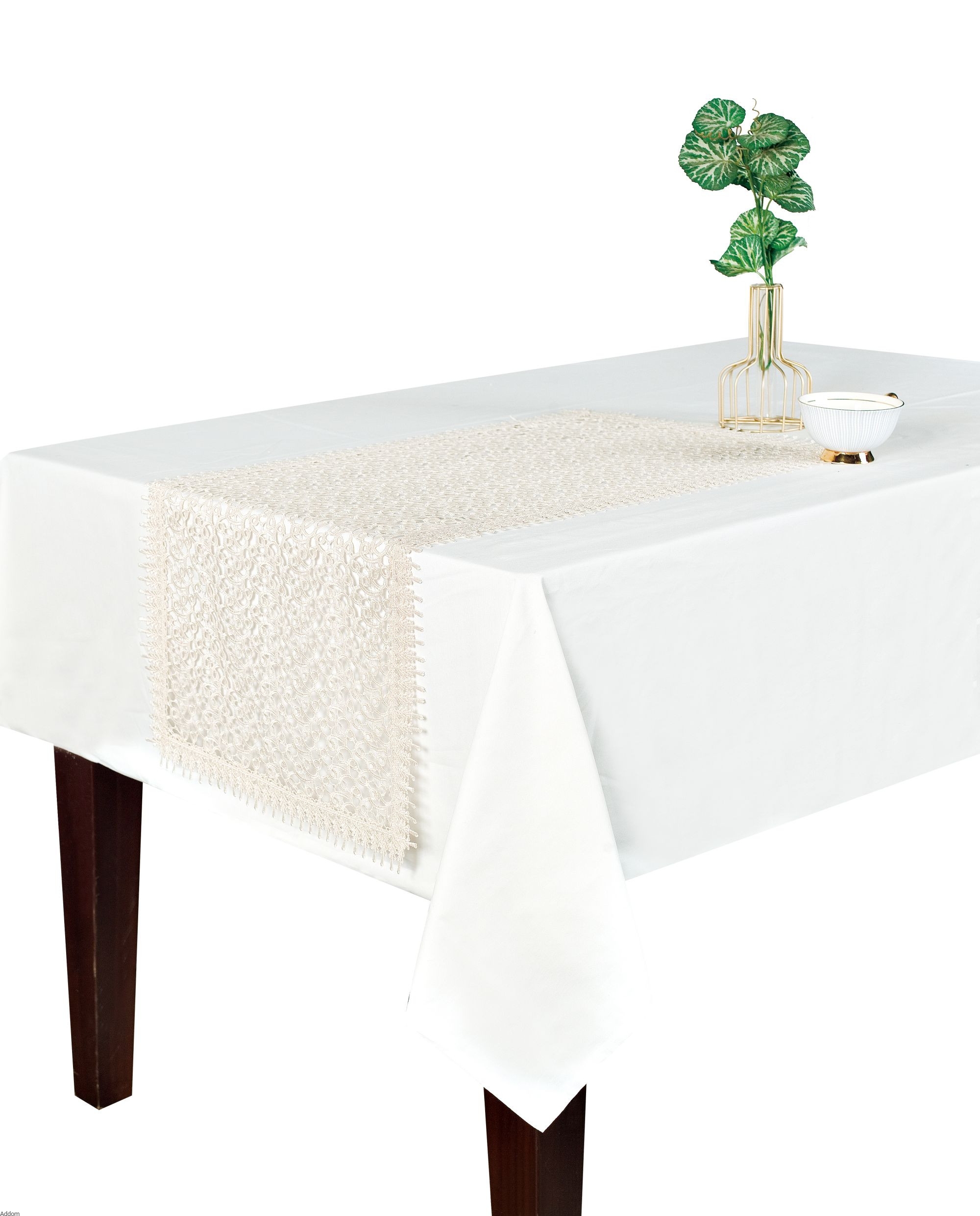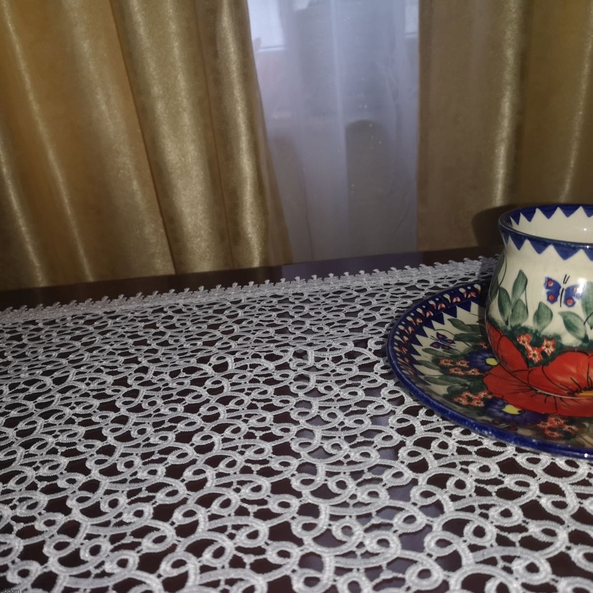 Bieżnik przejrzysty, gipiurowy prostokątny, wykonany w formie zaokrąglonych, eleganckich elementów, na wzór mandali, naokoło obszyty gęstą gipiurą o roślinnej formie. Koła są duże, ale nie są gęste, dlatego prześwitywać przez nie będzie blat stołu, tworząc ładny kontrast. Szczególnie atrakcyjny jest złoty kolor z połączeniu z brązami, obecnie tylko ten wariant kolorystyczny oferujemy, w 2 rozmiarach do wyboru.