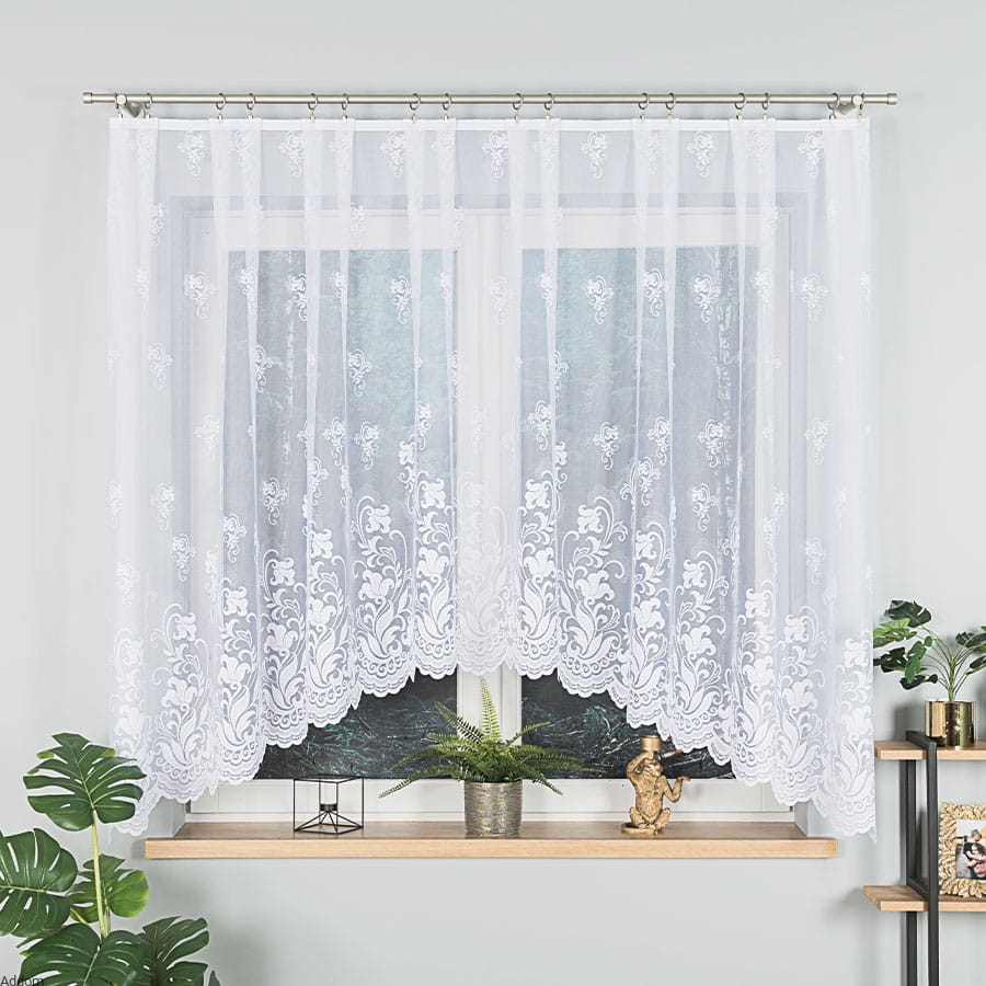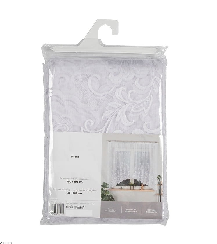 - Funkcjonalność: Prześwitująca struktura firanki pozwala cieszyć się naturalnym światłem, jest przewiewna, jednocześnie zapewnia odpowiedni poziom prywatności.