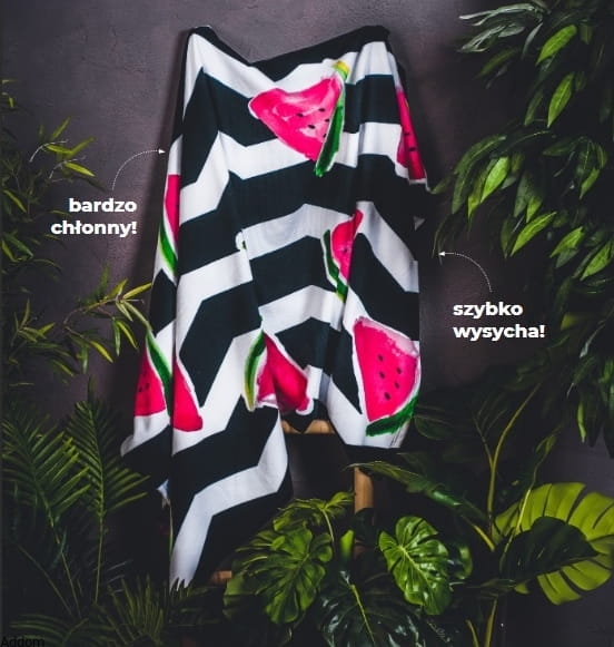 Gramatura tych ręczników to 250 gram, wymiary 90x170 cm, a włókno to mikrofibra, która charakteryzuje się tym, że jest lżejsza, co ma niebagatelną rolę podczas transportu, a przecież nie chcemy wychodzić na plaże czy piknik nadmiernie obciążeni, ponadto mikrofibra szybciej wysycha, i w przypadku zamoczenia, szybciej wysuszymy lekkie ręcznik z mikrofibry, niż gruby ręcznik bawełniany, którego zadaniem jest chłonąć jak najwięcej wody - w przypadku mikrofibry jest odwrotnie, nie wciąga ona wody, a szybko schnie. Taki szybko schnący ręcznik przy zmianie pogody szybko stać się może kocykiem do osłonięcia ciała.
