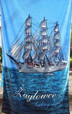 Ponadto ręczniki te zawierają pasek, który umożliwia ich zwinięcie tak, by nie zajmowały wiele miejsca, albo doczepienie do plecaka czy torby, szczególnie. Bez gumek do zwijania jest jeden z wzorów - ten w motyle, ale to, czy ręcznik ma paski widać również na fotografii każdego z modeli. Oferowana grafika w szerokiej gamie sprawia, że każdy dobierze jakąś dla siebie - od bardziej poważnej, z kotwicą, do całkiem jajcarskiej, z foczkami, przez dziecięce. Wersja w motylki, rybki i statki nie ma gumek do wiązania (tych wzorów posiadamy niewielką, ograniczoną ilość).