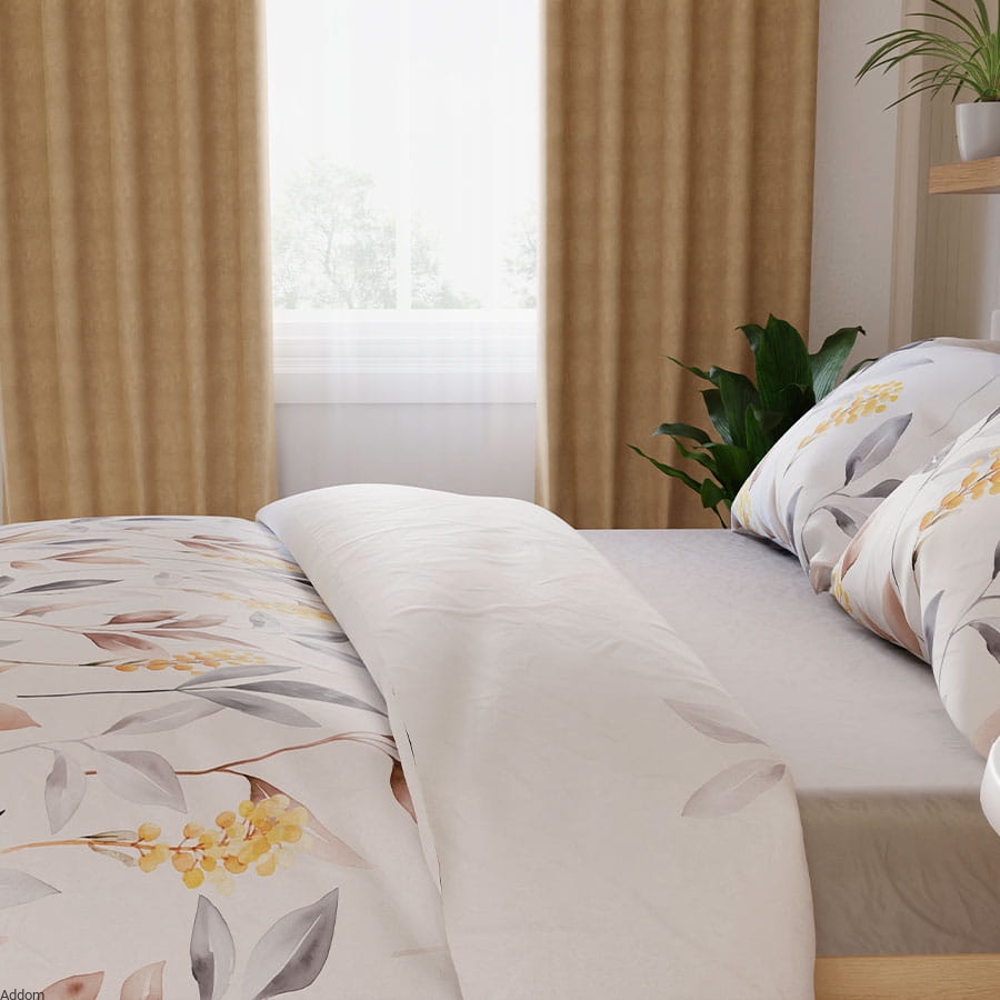 Delikatny wzór listków na tle jasnej bieli nadaje pościeli uniwersalny charakter, doskonale pasujący zarówno do nowoczesnych, jak i klasycznych aranżacji wnętrz. Dzięki wysokiej jakości materiałom, pościel jest trwała i łatwa w pielęgnacji – zachowuje swoje kolory i miękkość nawet po wielu praniach. To idealny wybór dla osób ceniących naturalne piękno i wysoki standard wykonania.