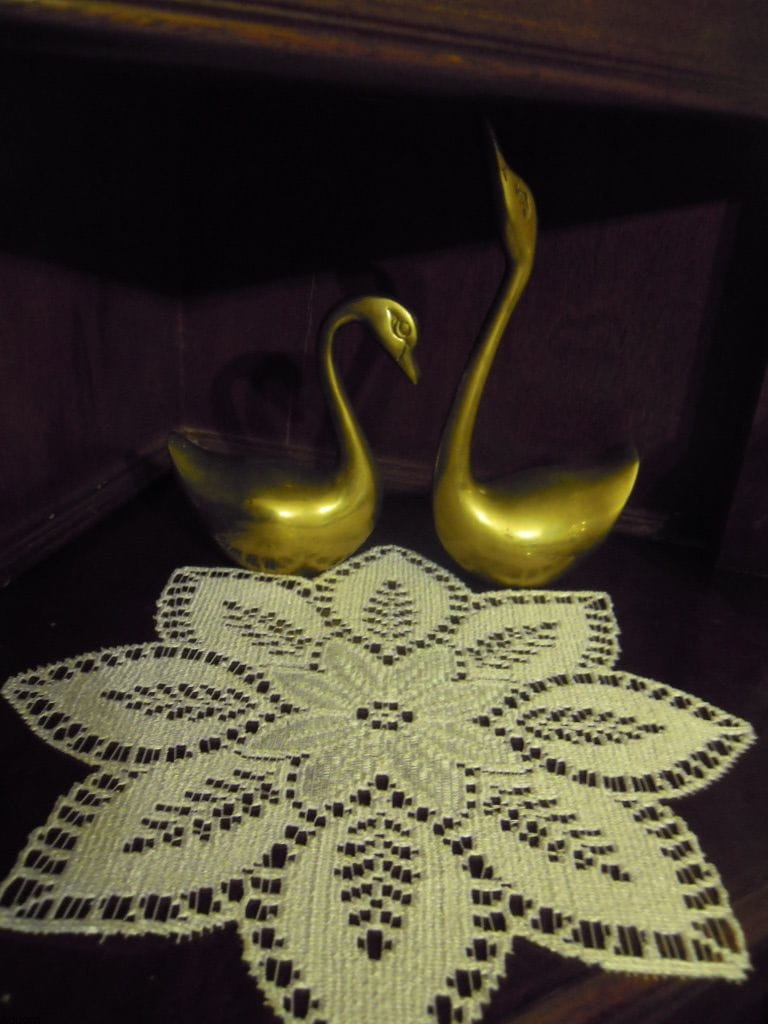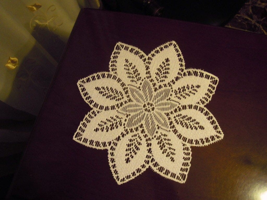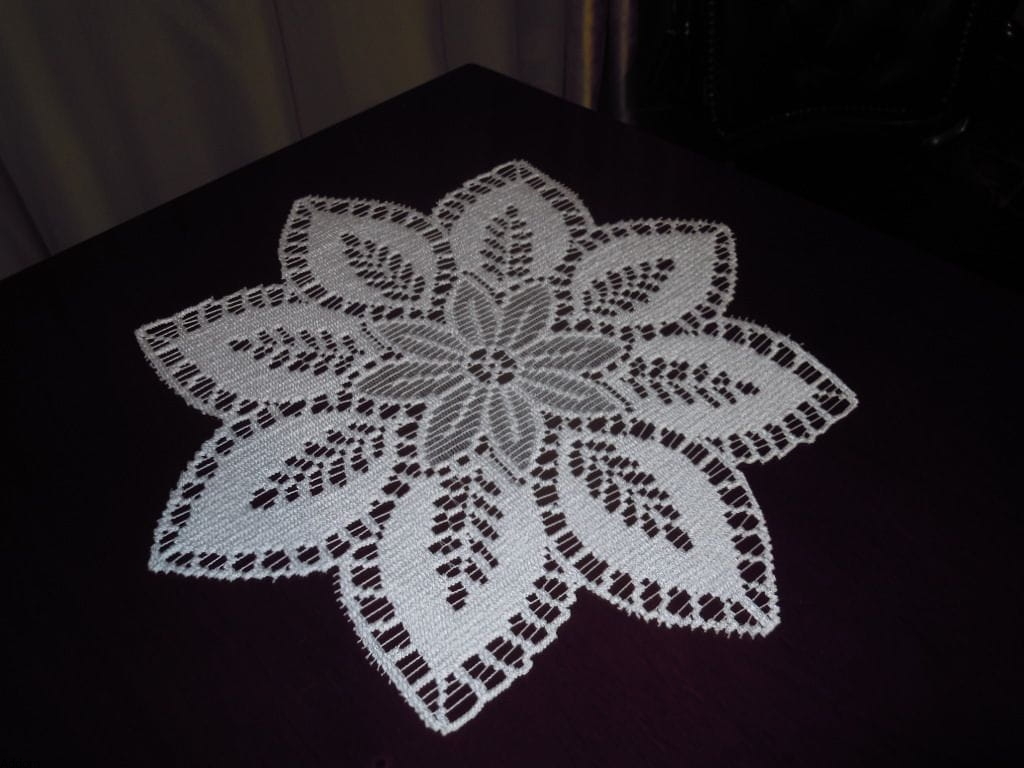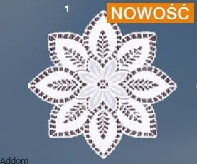 Serwetki w formie kwiatu, z mniejszym kwiatem na środku, z którego wystają jeszcze długie płatki, tworzące obrys serwetki. Serwety są żakardowe, ecru lub białe, a ich średnica wynosi 30 cm. Wyglądają jak płaskie kwiatuszki ułożone na blacie, dekorując go, a dzięki temu, że są gęste, zwarte, bez ażuru, dobrze będą spełniać funkcję ochronną.