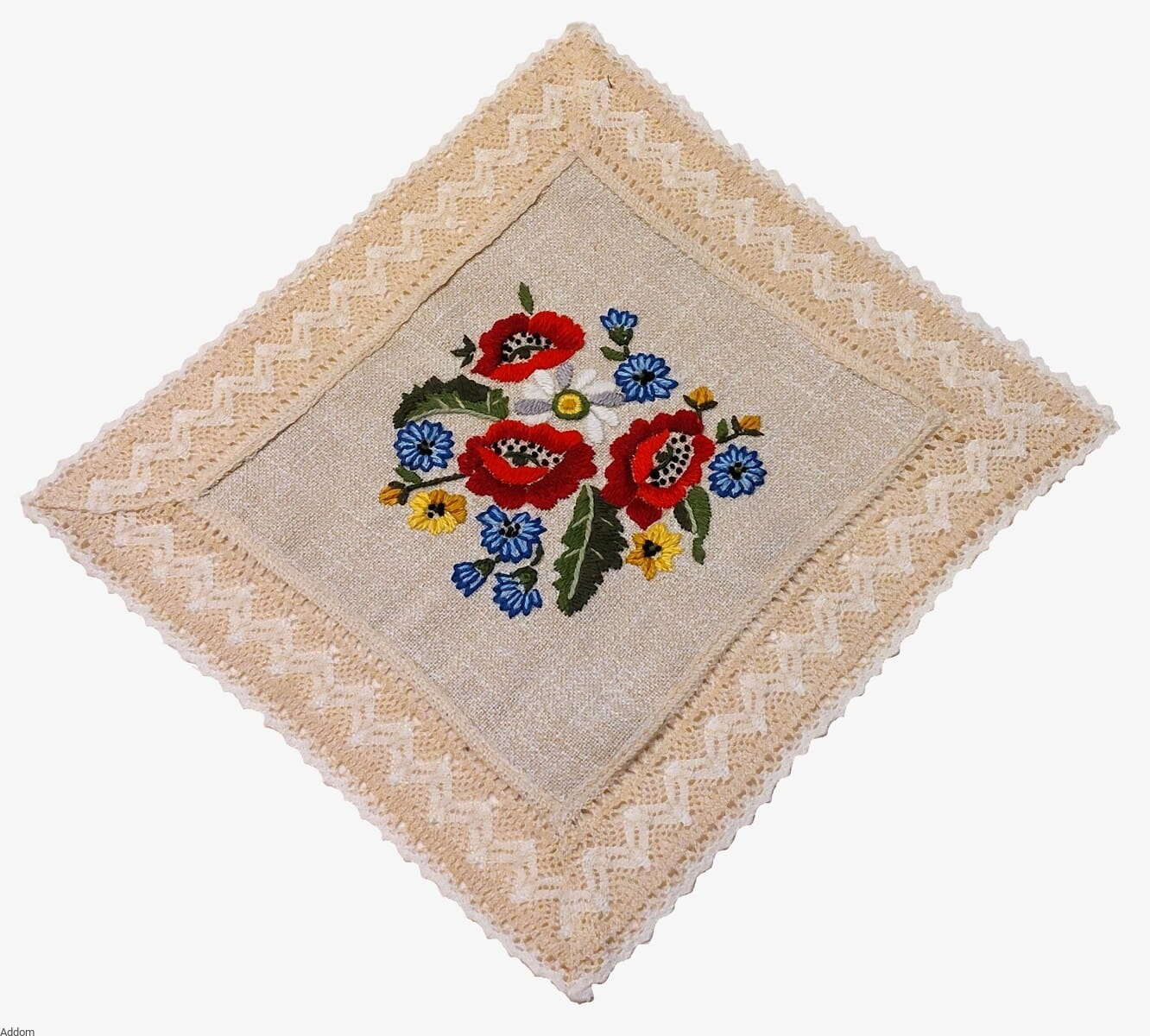 Średnica 40 cm, kwadrat 35x35 cm, prostokąt 35x50 cm. Wersje kolorystyczne: białe kwiaty stokrotek i czerwone maki.