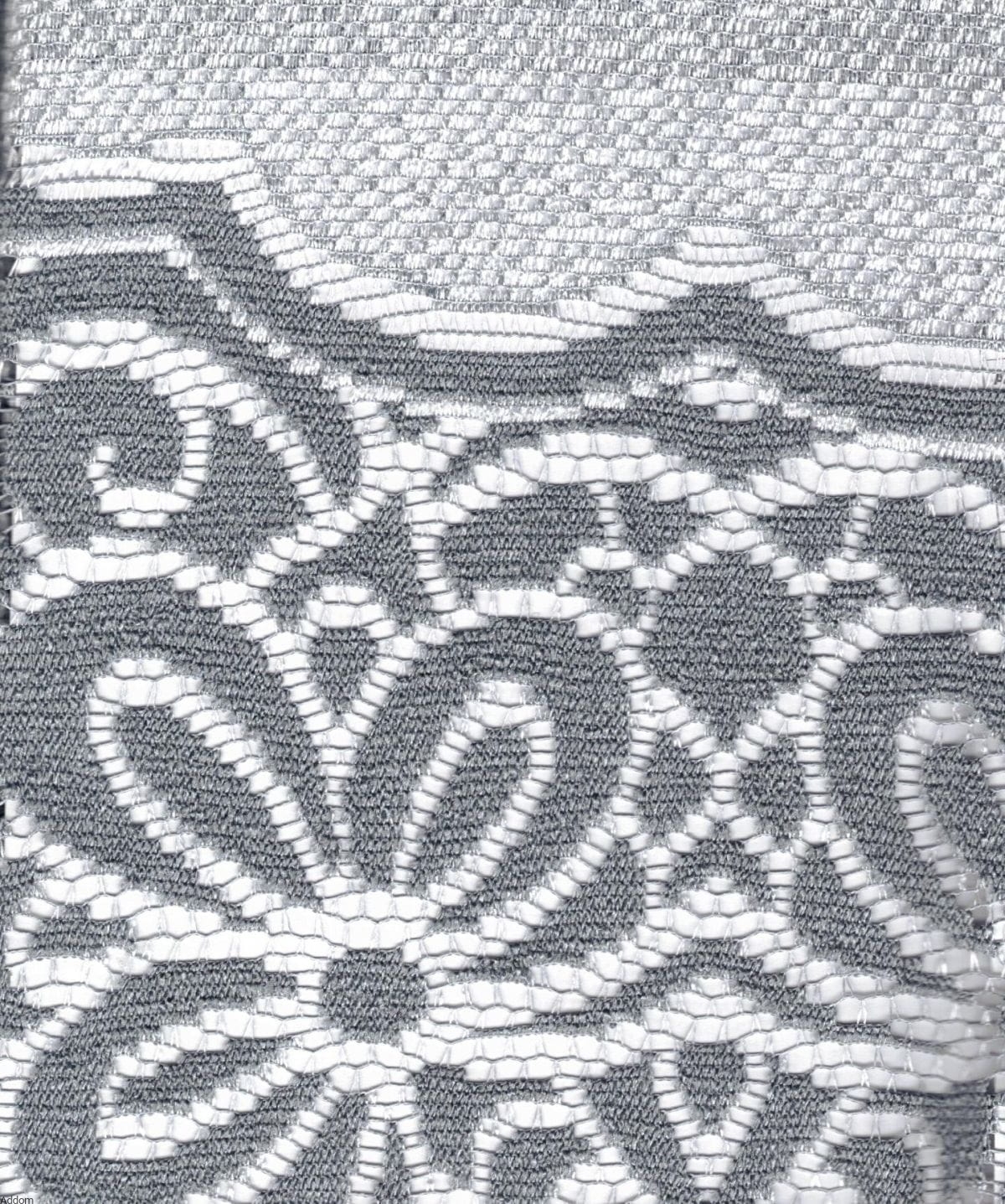 Niesamowite, srebrne obrusy żakardowe, z biało srebrnym tłem i ciemnym popielatym, gęstym wzorze inspirowanym naturą. Wzory to kwiaty w kolorze ciemnego odcienia koloru popielatego. Całość znakomicie zastępuje biały obrus, bowiem tło mimo, że srebrne, w kontraście ze stalowym obrysem kwiatów daje całkiem jasne, niemal białe tło.