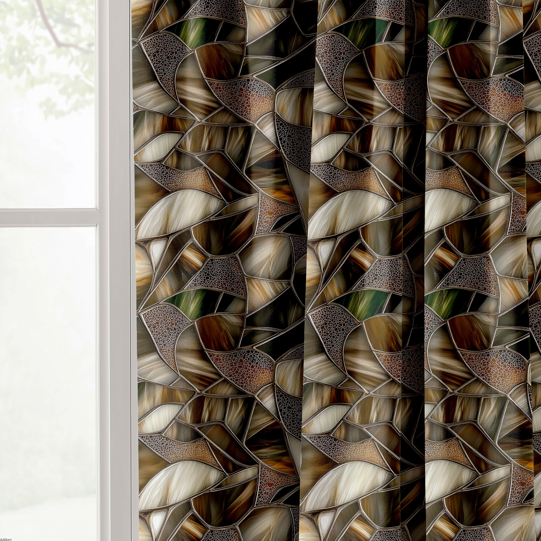 Tkanina blackout, znana ze swojej zdolności do blokowania światła z zewnątrz, staje się kanvas'em dla tego wyjątkowego projektu. Ta tkanina wraz z wzorem na niej to więcej niż zwykła tkanina zasłonowa - to dzieło sztuki, które dodaje elegancji każdemu pomieszczeniu.