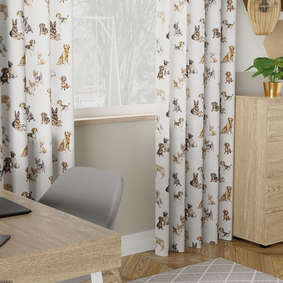 Tkanina na zasłony w realistycznie przedstawione pieski różnych ras to uroczy i pełen ciepła wybór, który wnosi do wnętrza radosny, przyjazny akcent. Wzory przedstawiające różnorodne rasy psów, od małych szczeniaków po większe, dorosłe psy, tworzą niepowtarzalną dekorację, która z pewnością przypadnie do gustu miłośnikom czworonogów. Ta tkanina doskonale sprawdzi się w pokoju dziecięcym a także w każdym innym pomieszczeniu, gdzie chcesz wprowadzić element zabawy i swobodnej atmosfery miłośnika lub hodowcy psów.