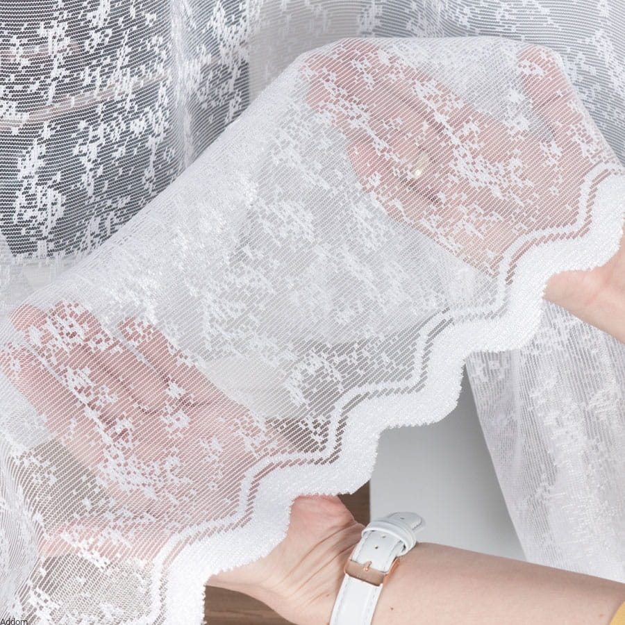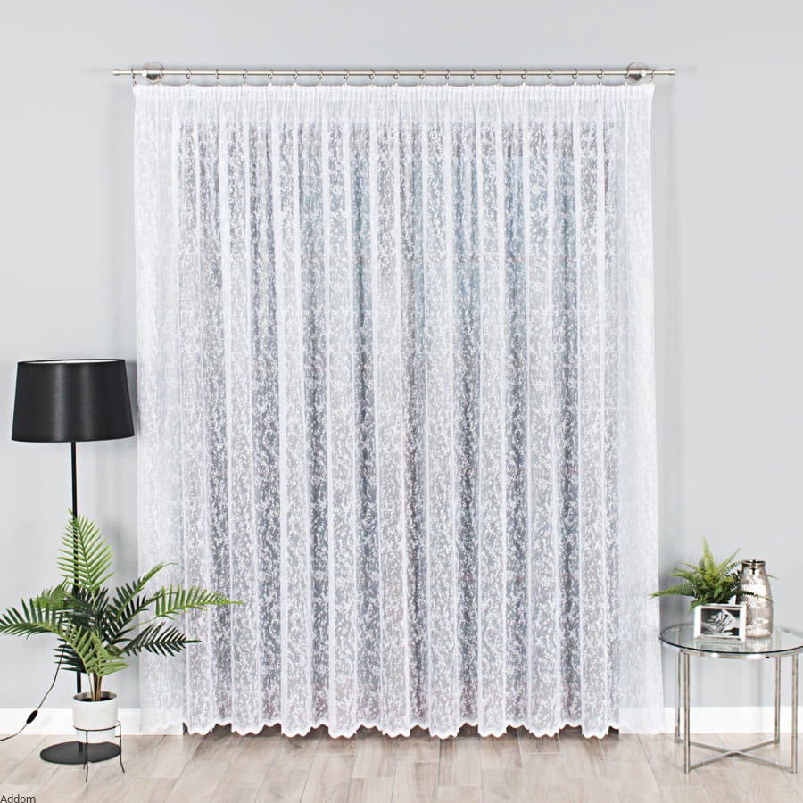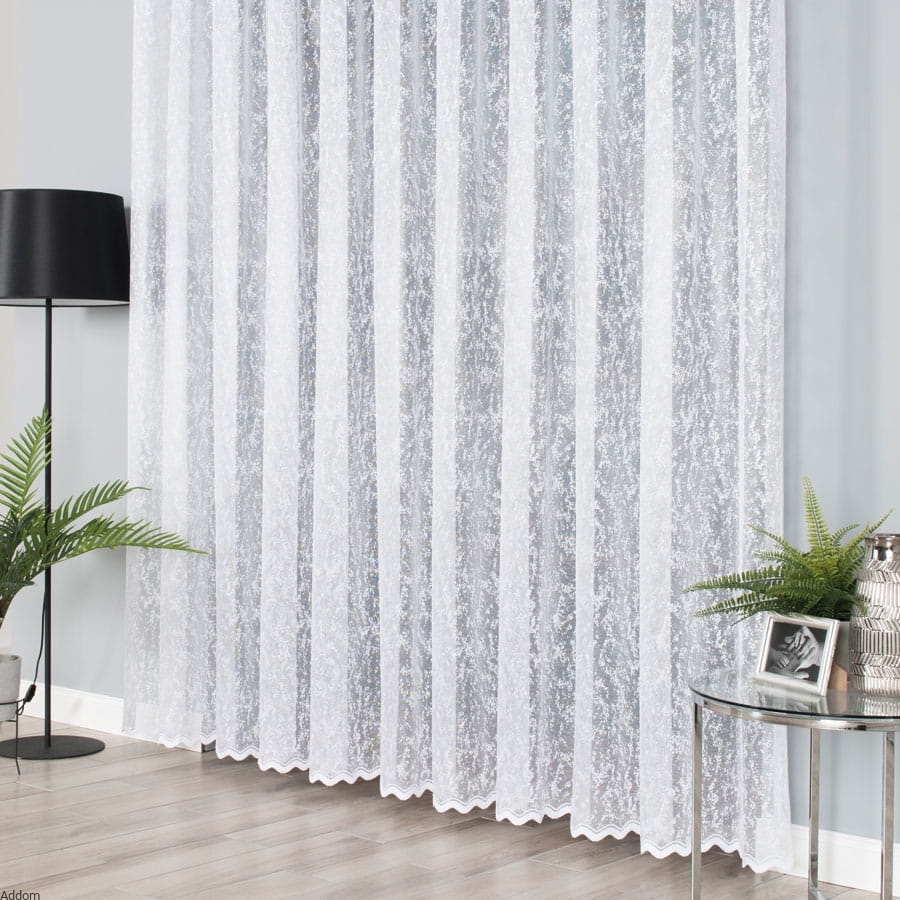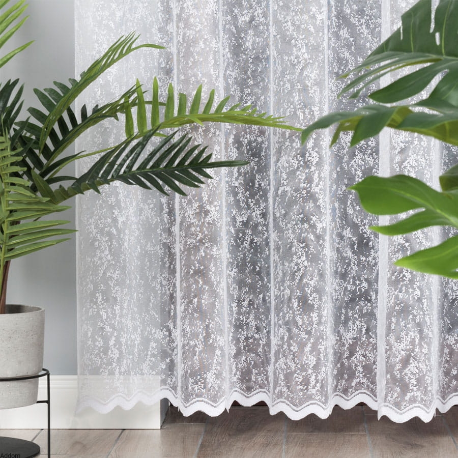 Firany w drobne kropeczki, rozmieszczone po całej firanie, od dołu do góry, z dodatkiem szerokiego wzoru dołem i w poprzek firany. Materiał na firany to żakard, wysokość firan 160 lub 180 cm. Dół z delikatnym podkreśleniem i subtelną falą. Firany takie nie wymagają prasowania, są więc nie tylko minimalistyczne ale i bardzo praktyczne. Są to firany idealne na lato jak i zimę, przepuszczalne dla powietrza, lekkie i przejrzyste które nie utrudniają widoczności od wewnątrz na to, co mamy za oknem.