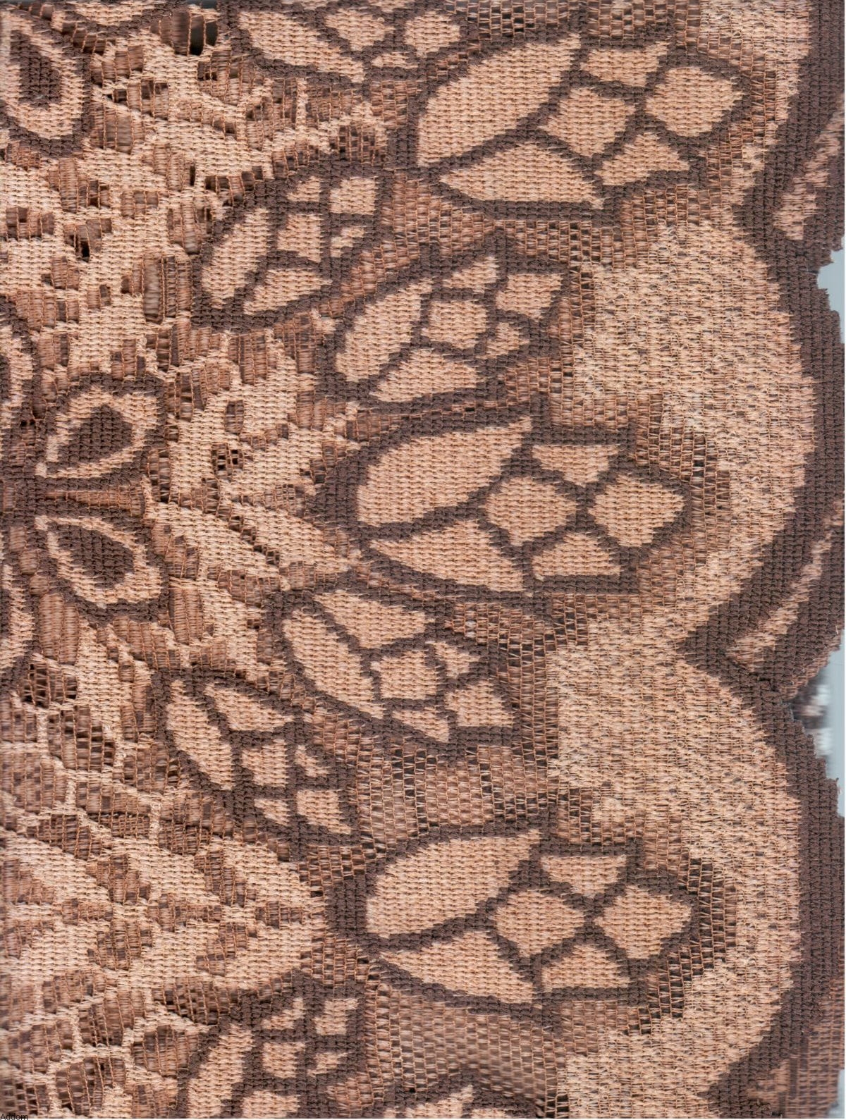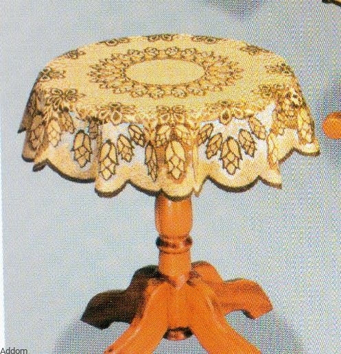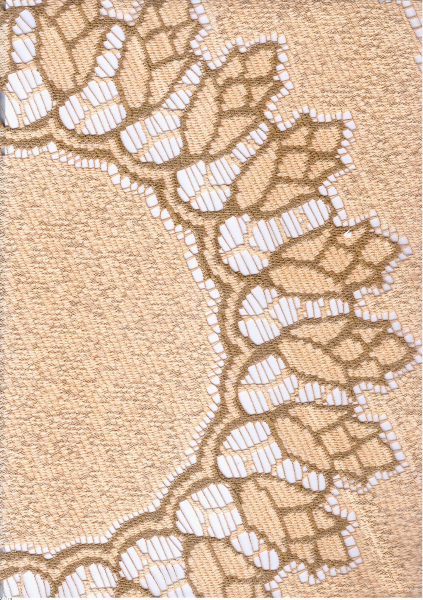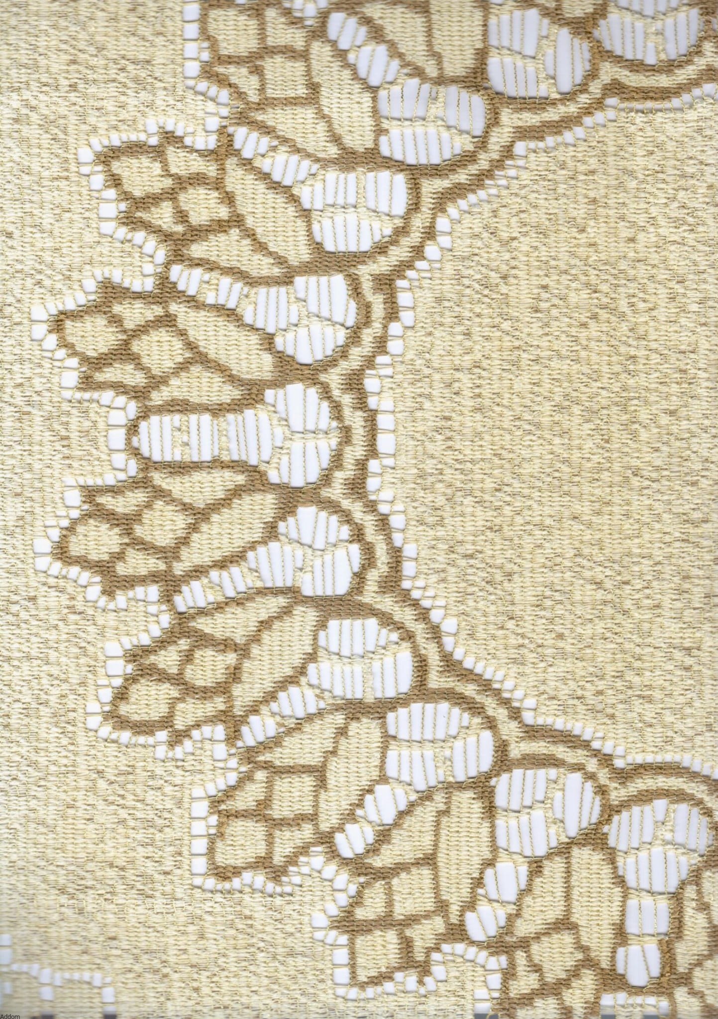 Strojny obrus żakardowy z nici w 2 kolorach, gdzie jeden kolor jest ciemny, a drugi, bazowy, jasny. Wersja ze zdjęcia głównego to wersja brązowa (brunat/brąz), a dostępny jest także kawowy brąz, o ciemniejszym tle, mniej zbliżonym do złotego, bardziej w odcieniu kawowym, natomiast wersja jasna oliwka / ciemna oliwka to kolor oliwkowy, tylko w 2 odcieniach, jaśniejszym i ciemniejszym jednocześnie. Jedyną wersją z jaśniejszym zdobieniem jest wersja oliwka/brunat - ten obrus wygląda cały złoty, ze złotymi zdobieniami, strojny, ale z mniejszym kontrastem. Wzór jest w postaci wiszących w dół pąków, podobnych nieco do kłosa.