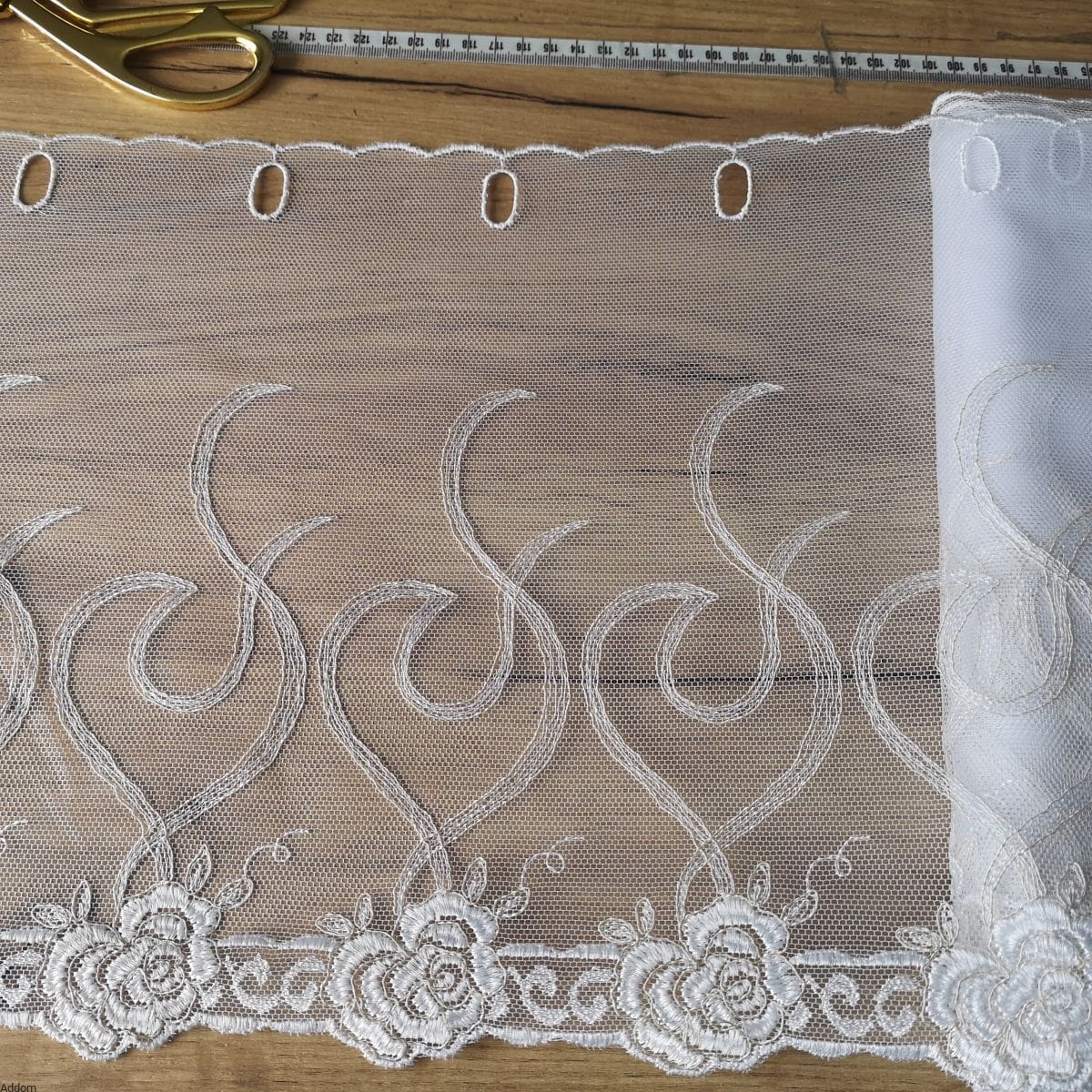 Zazdrostka haftowana z błyszczącym wzorkiem kwiatowym to elegancka i stylowa dekoracja okienna, która doda uroku Twoim oknom. Wykonana z tiulu greckiego, z delikatnym haftem wykonanym białą i złotą nicią, tworzącą subtelne, błyszczące akcenty. Złota nić jedynie obrysowuje wzorek, który wypełniony jest białą nicią.