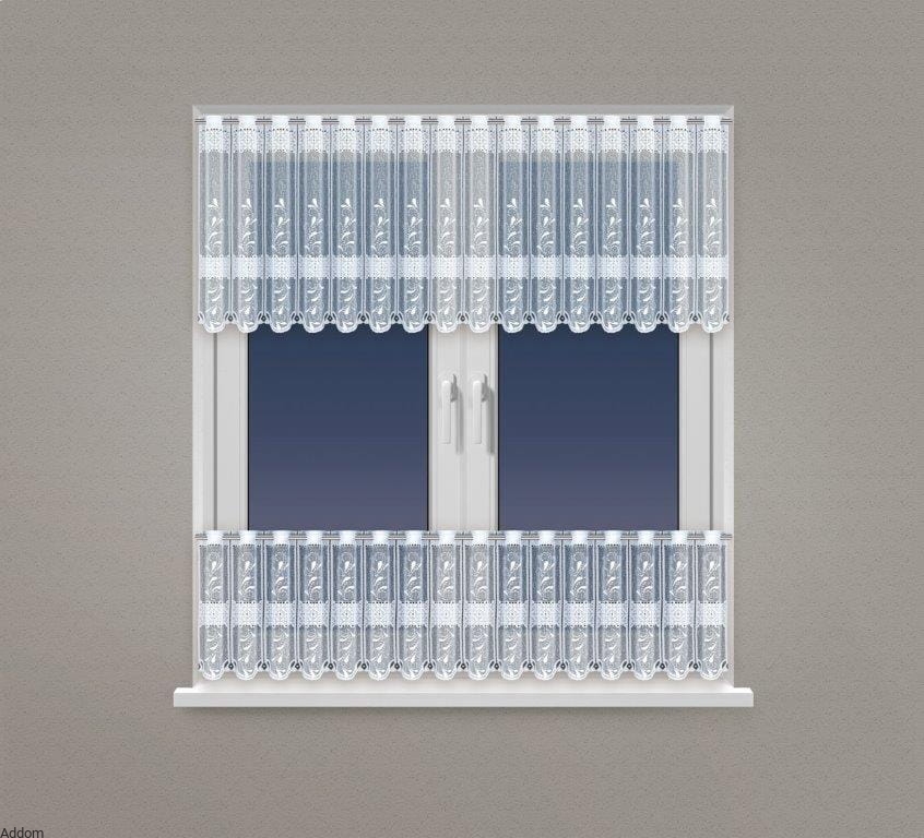 Zazdrostki kaliskie panelowe, czyli zazdrostki, których nie trzeba obszywać po przycięciu. Zazdrostki są żakardowe. Misterny wzór jest biały, ale wkomponowano w niego również złotą lub srebrną nić, która wypełnia dekoracyjną część wzoru paneli, dlatego wybierając wariant kolorystyczny otrzymacie firankę białą, ale ze złotym lub srebrnym zdobieniem, do wyboru. Wzór pochodzi z kaliskiej kolekcji Lux Collection.