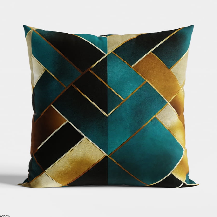Nasze złote poszewki dekoracyjne zdobią kunsztowne wzory geometryczne, które nadają im charakteru i wyrazistości. Linie, kształty i figury geometryczne tworzą harmonijną kompozycję, która przyciąga wzrok i dodaje wnętrzu wyjątkowego blasku i uroku. Złoty kolor poszewek wprowadza do pomieszczenia subtelną nutę luksusu i elegancji. Odbijając światło, złoto nadaje wnętrzu ciepła i blasku, dzięki czemu przestrzeń nabiera wyjątkowego charakteru. Kolor złoty połączony jest ze spokojnym brązem, modnym morskim turkusem lub bielą i różem.